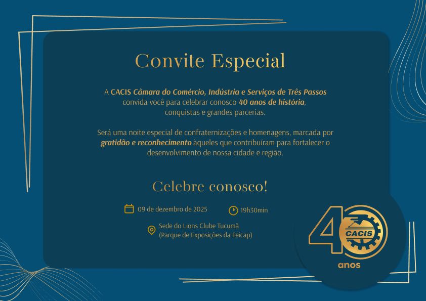 A CACIS – Câmara do Comércio Indústria e Serviços completa no dia 09 de dezembro 40 anos de história, conquistas e grandes parcerias.